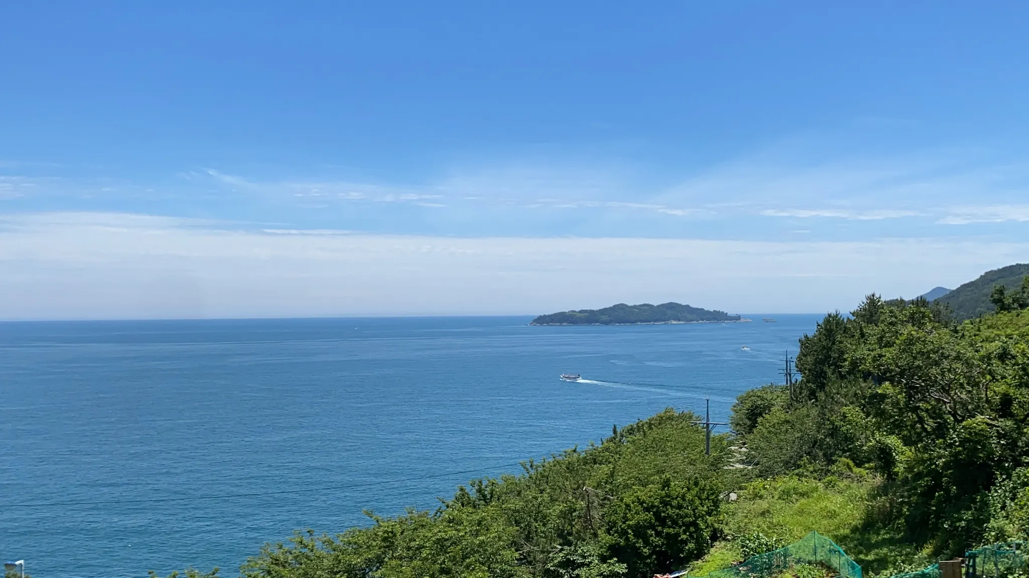 장승포 언덕에서 바라본 지심도. 지금 바라보는 지심도의 건너편 바다에서 학살이 있었다.