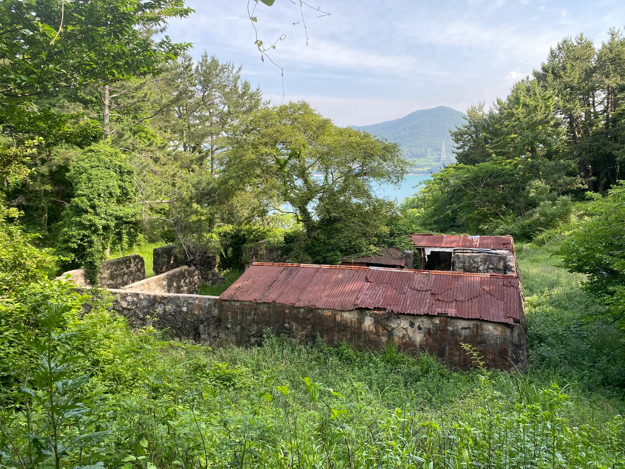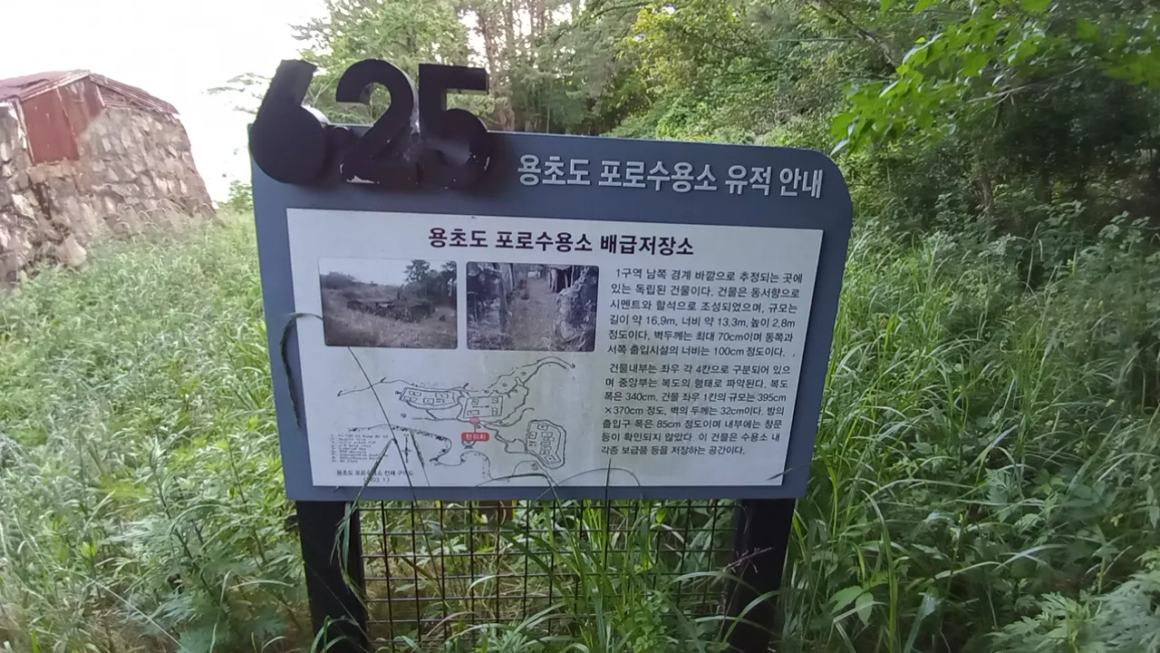 급수장 건너편 산으로 향하는 내리막길 끝에 배급저장소가 있다. 식량과 보 급물품 등을 보관하던 곳이었다. 동물 등의 침입을 막기 위해 돌과 시멘트로 견고 하게 지어졌다. 그래서인지 예전의 모습을 여전히 간직하고 있었다. 보통 포로수 용소 건물을 보면 너무 오랜 시간이 지났기에 벽만 남고 지붕은 없는 경우가 많은 데 이곳은 지붕이 남아 있었다. 지붕을 덮은 슬레이트도 당시의 것이라고 했다.