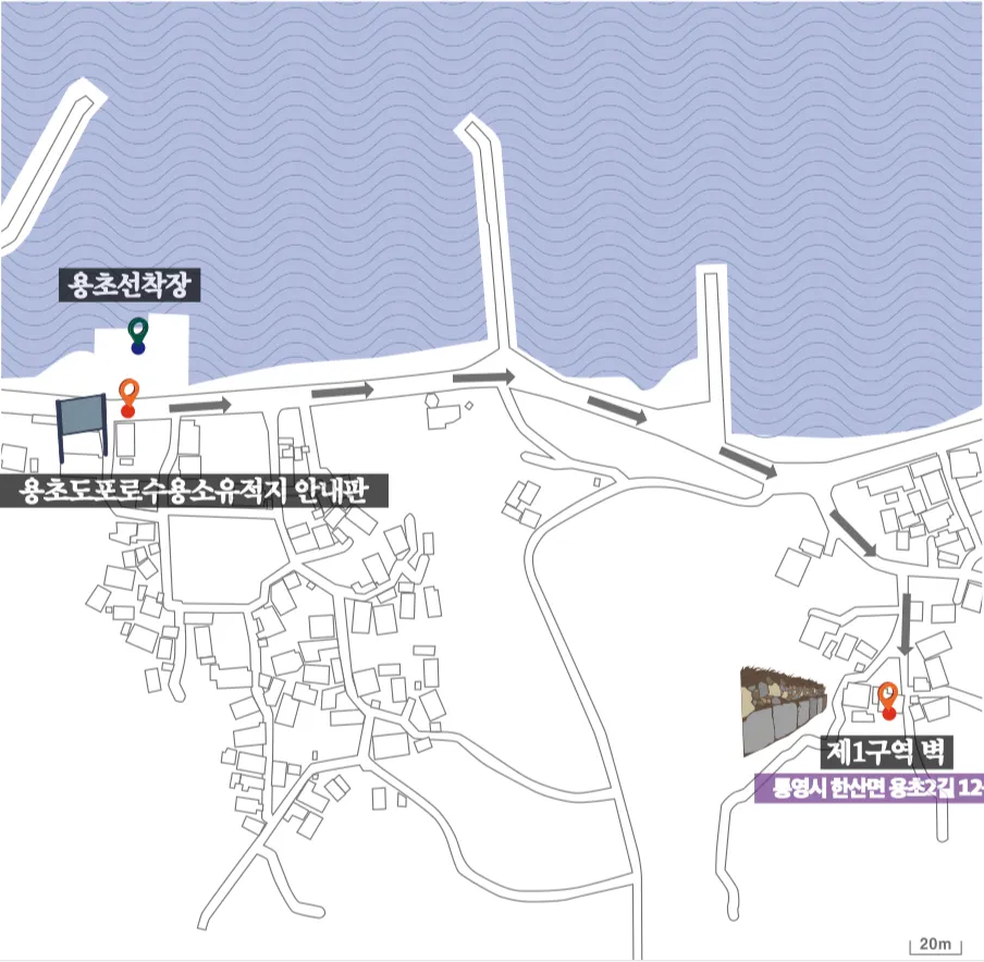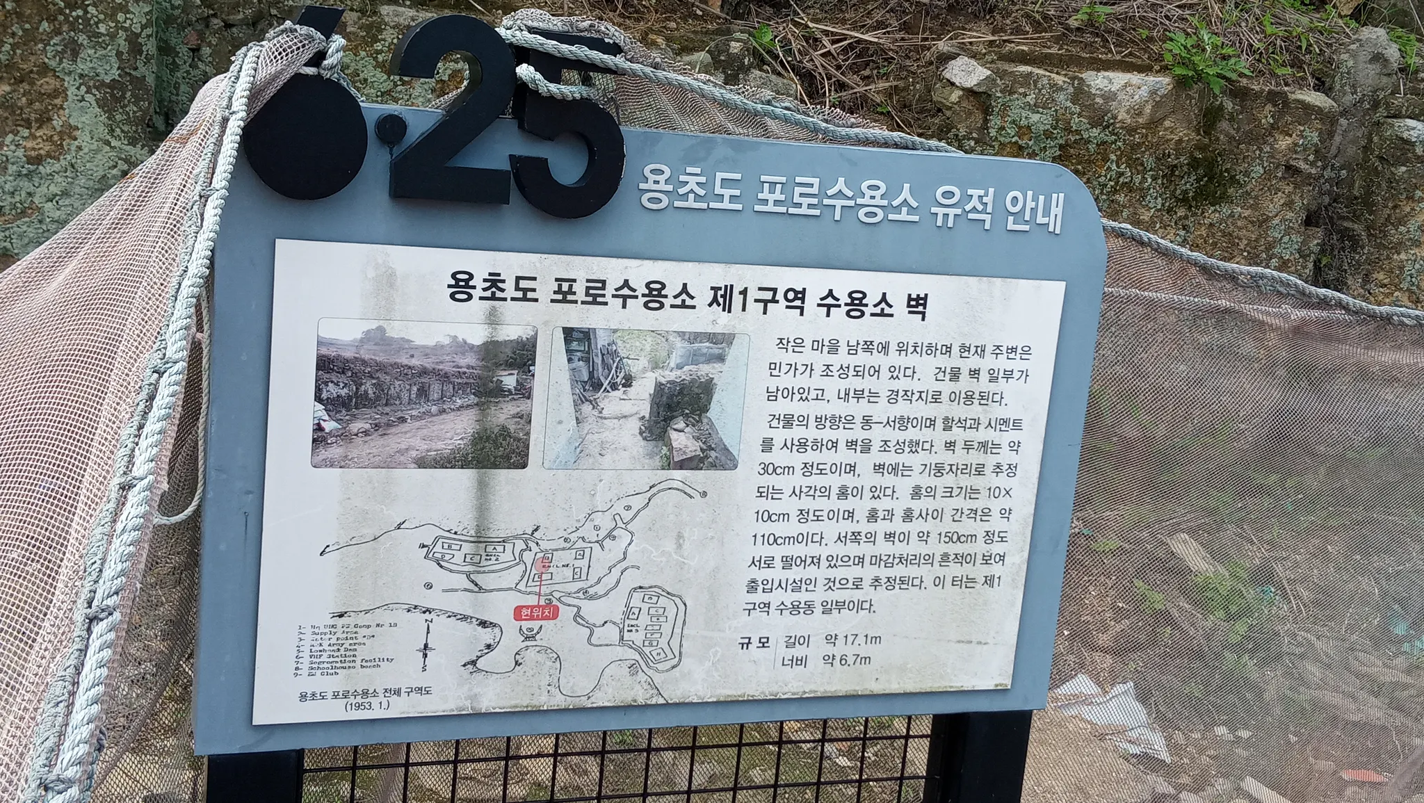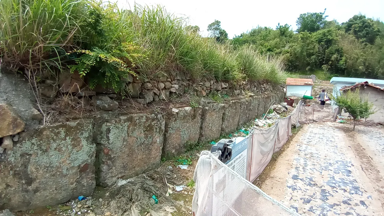 지금의 용초마을 안에도 포로수용소의 흔적이 있다. 밭 한쪽에 산에서 보 았던 포로수용소 벽과 똑같이 생긴 벽이 세워져 있다.