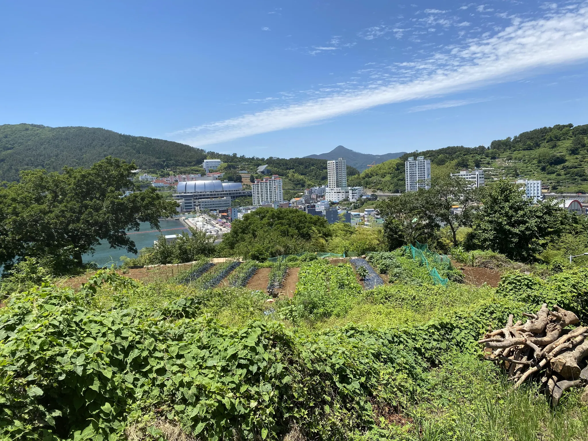 신사 터에서 바라본 장승포. 가운데 있는 한일비치타운 건물이 당시 장승포경찰서가 있던 곳이다.
