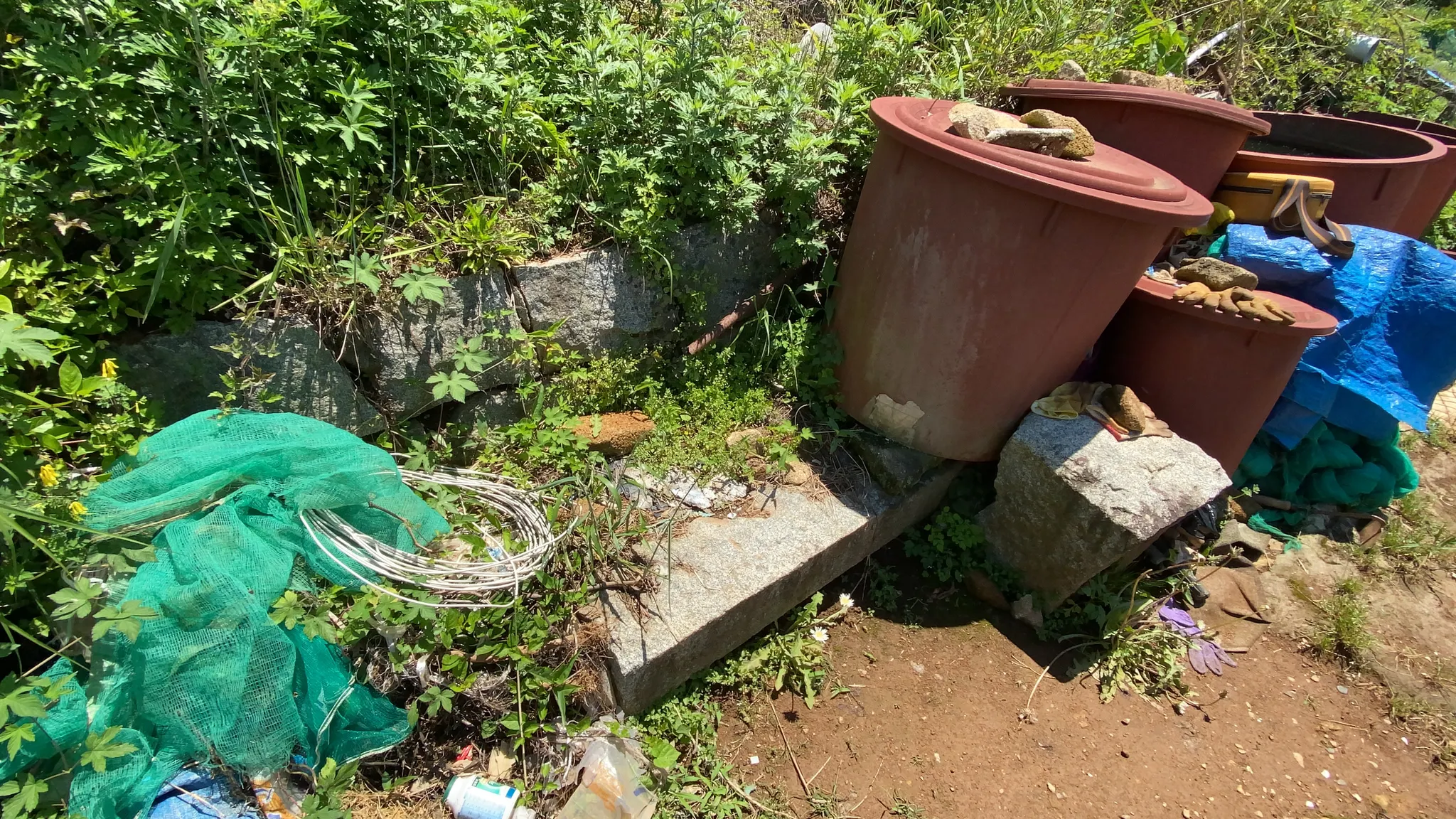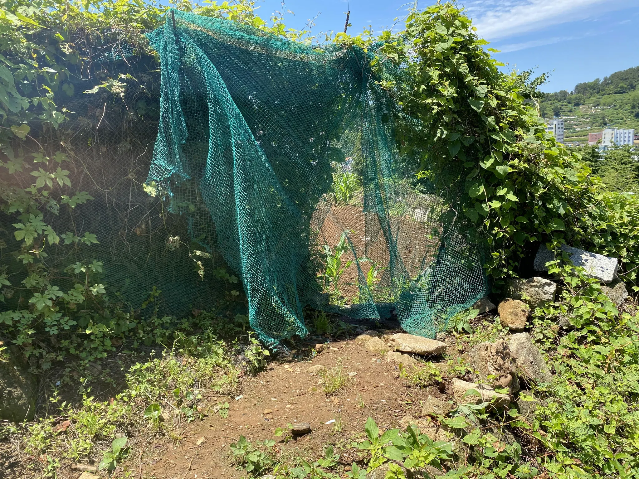 그물망을 통과해 밭으로 들어가면 신사 터가 나온다.