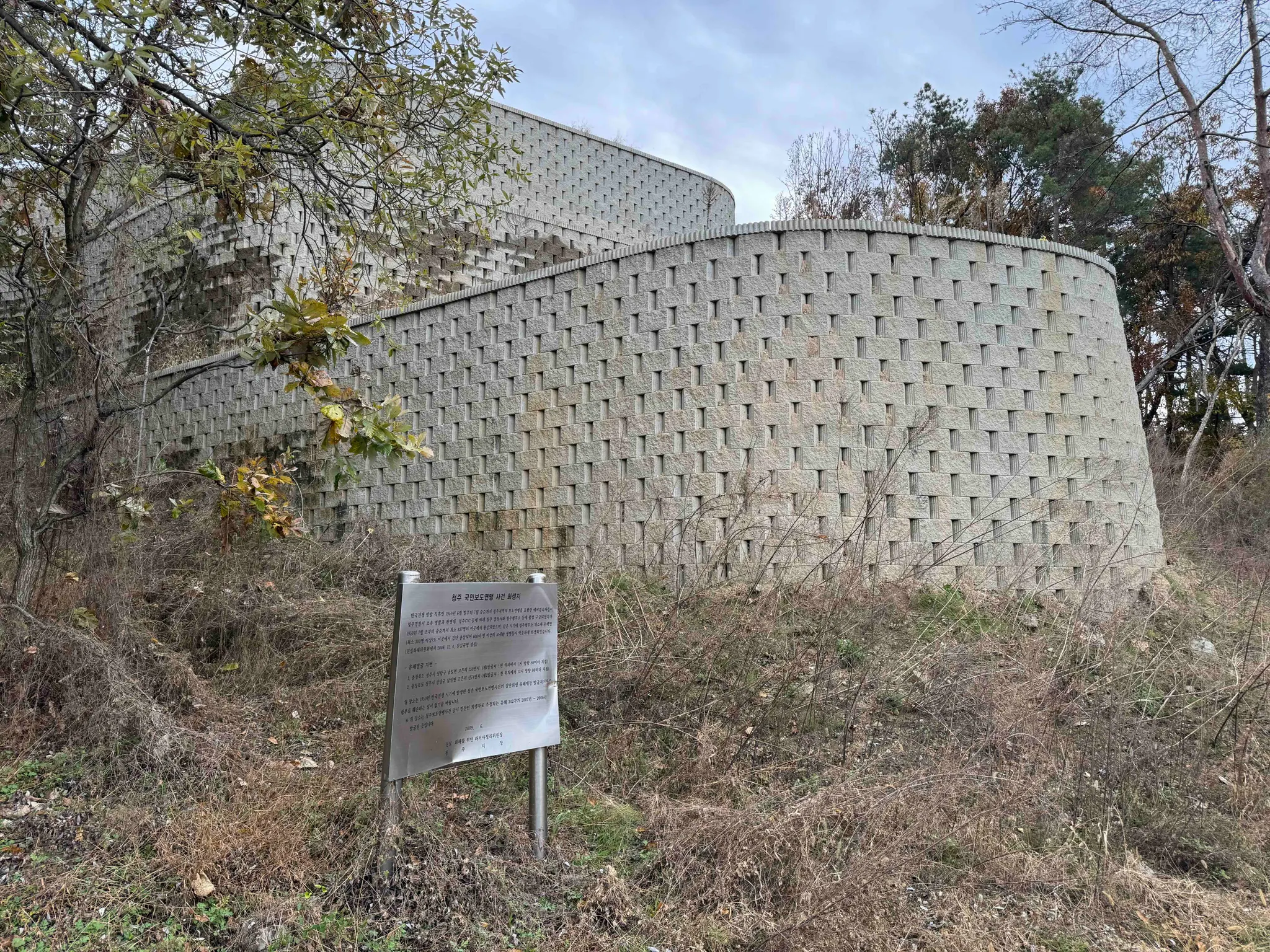 2025년 11월 당시 분터골 학살 안내판. 학살 현장 일부에 주택 공사를 위한 옹벽이 들어섰다.