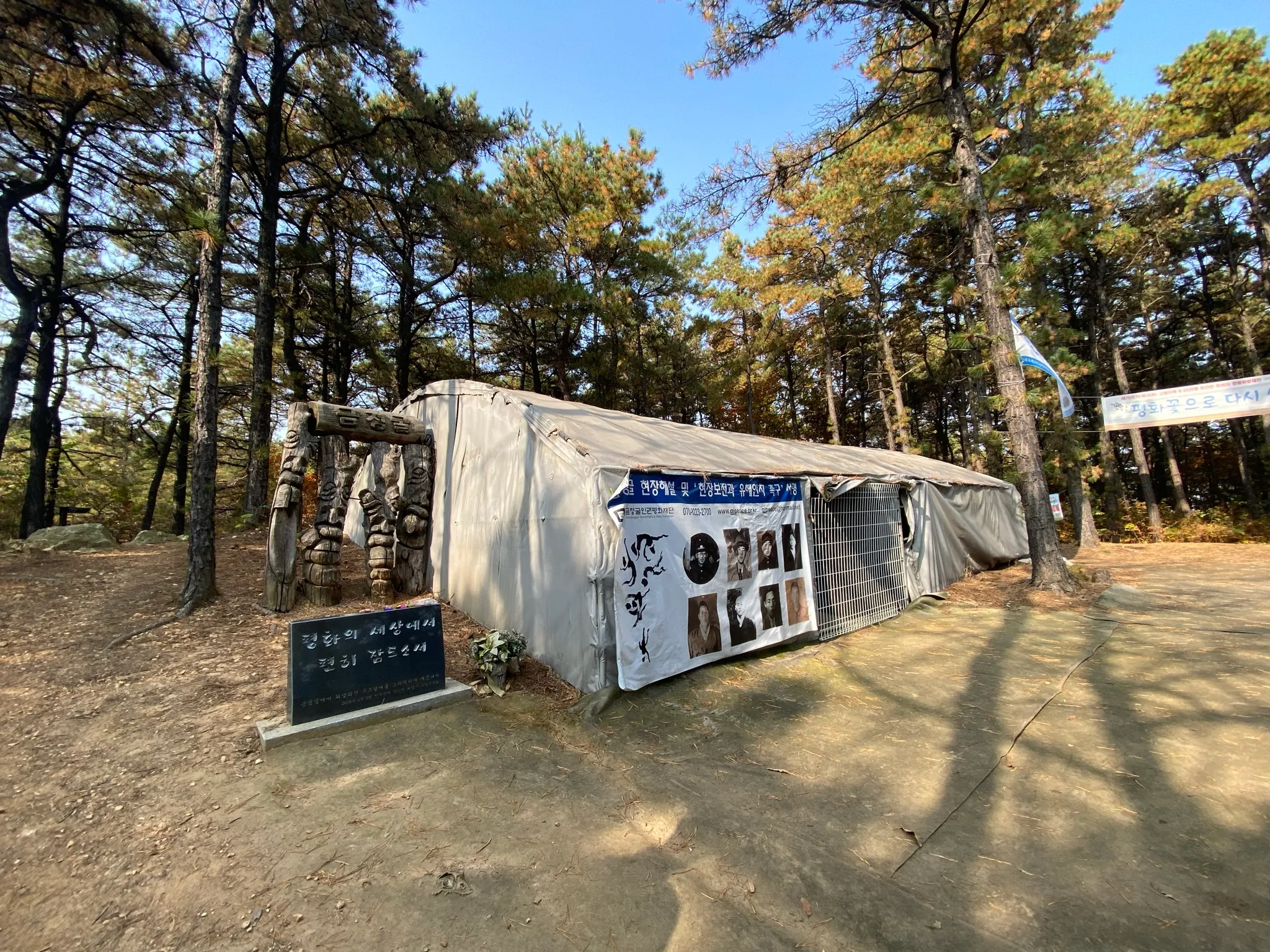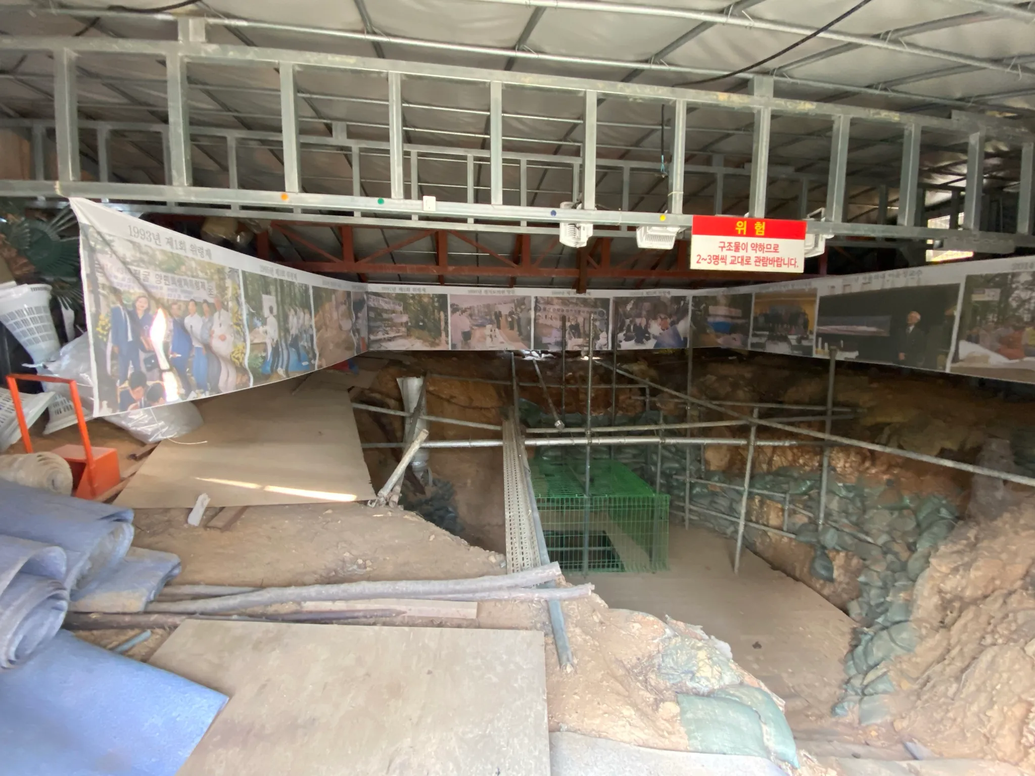 금정굴 학살 현장. 현재 천막을 씌워 놓았다.