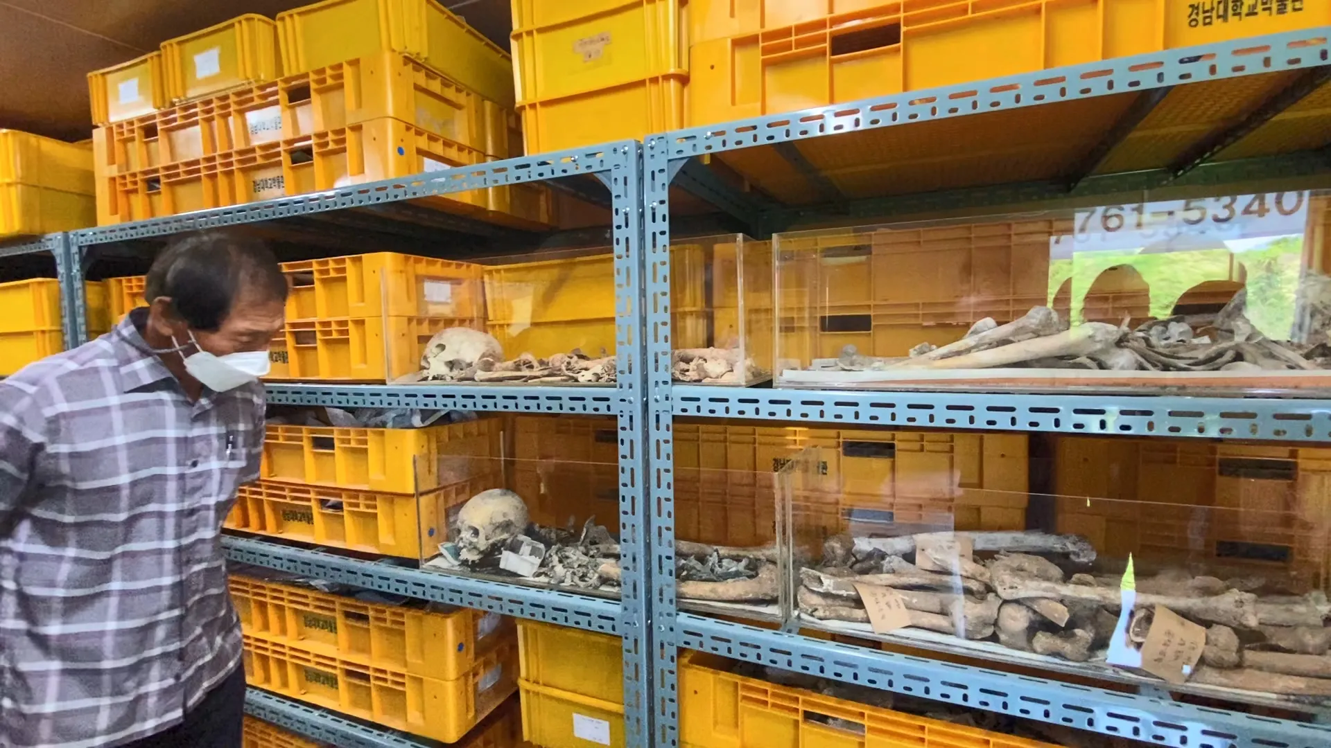 컨테이너 안에 안치된 유해. 마산 진전면 여양리에서 학살당한 진주형무소 재소자와 진주지역 국민보도연맹원의 유해다.