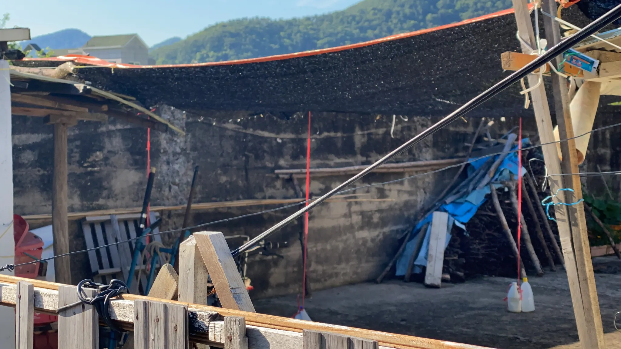 수월 마을회관 인근 주택의 마당. 마당 의 담장이 포로수용소 특별감옥의 담장이었다고 한다.