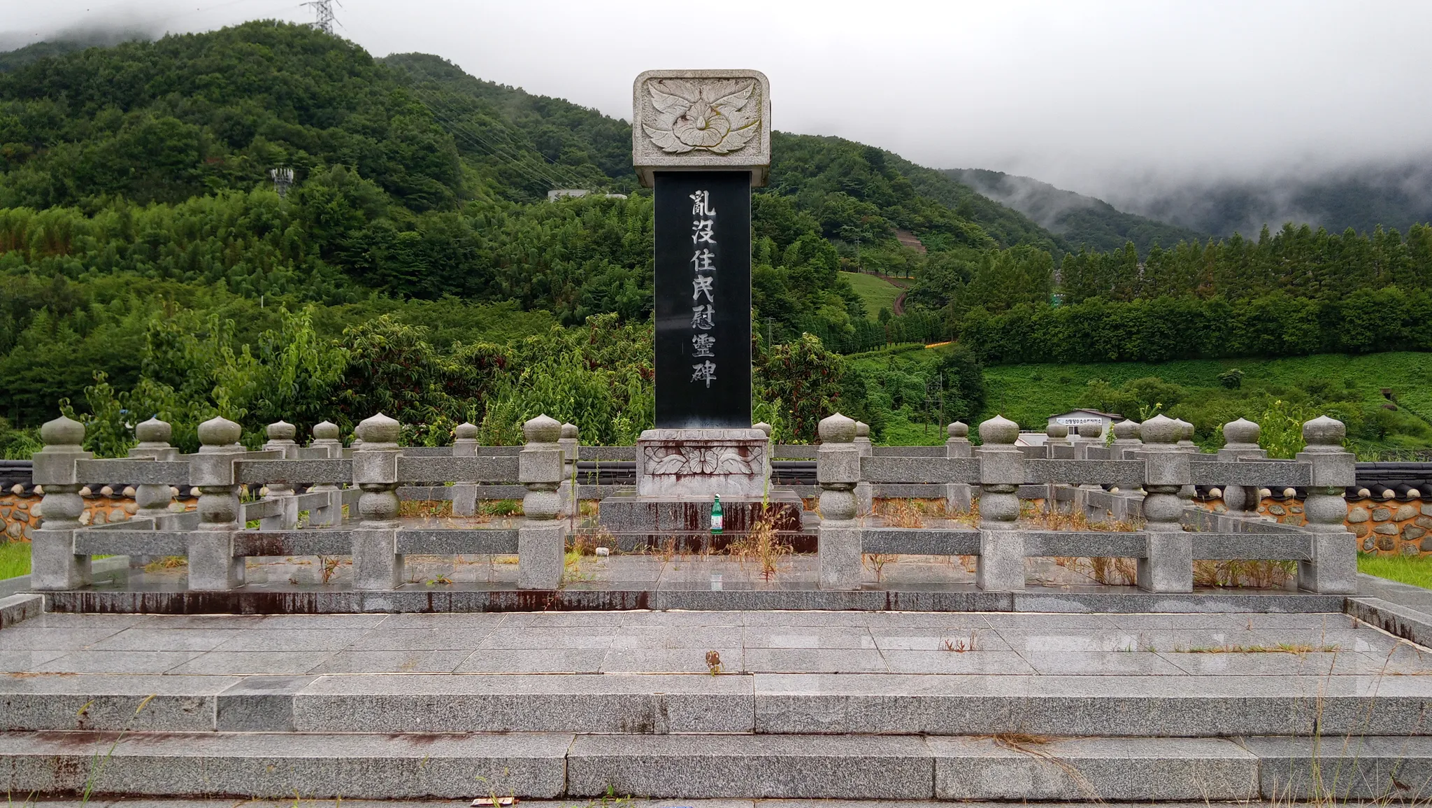 위령비에는 이런 문구가 적혀 있다. “아! 아! 꿈도 아니고 지옥도 아닌 그 순간의 비명소리! 저 하늘이 울고 저 신령이 통곡하던 그 날! 시냇물이 오열하고 산새가 울부짖던 그 날!”
