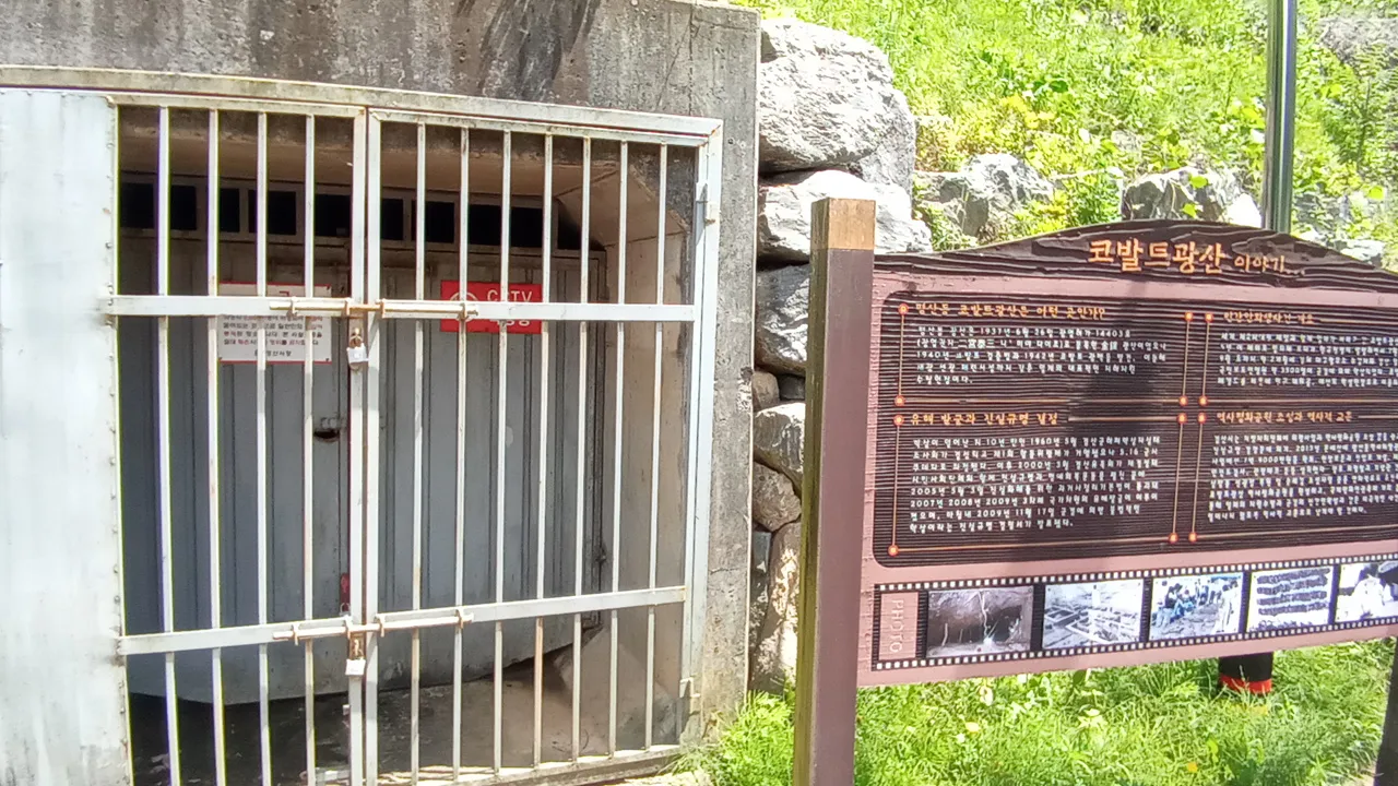 우익단체에 의한 내부 파손을 방지하기 위해 철문으로 코발트광산 입구를 닫아 놓았다.