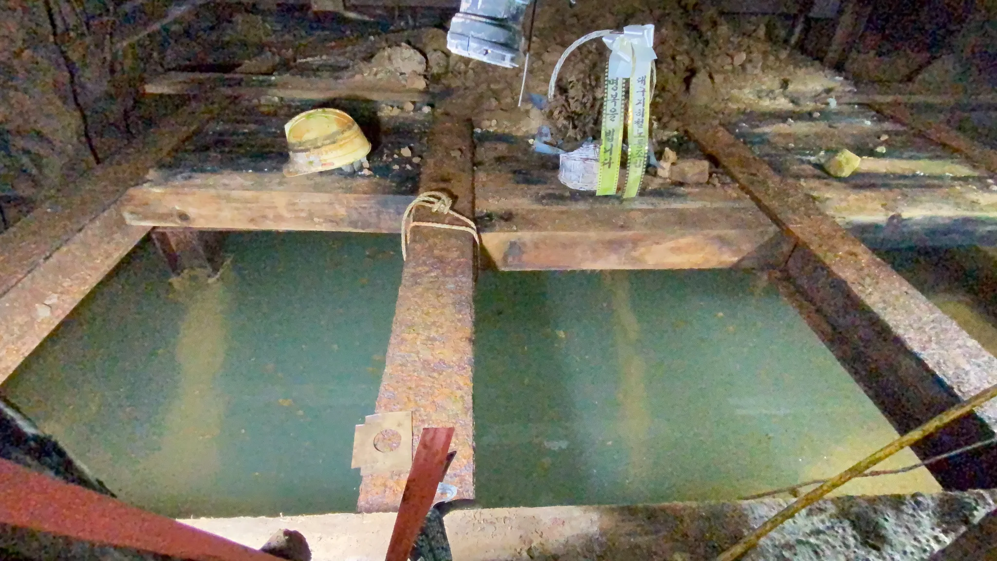 아래로 뚫린 갱도에 물이 가득 차 있다. 저 안에도 유해가 있다고 한다.