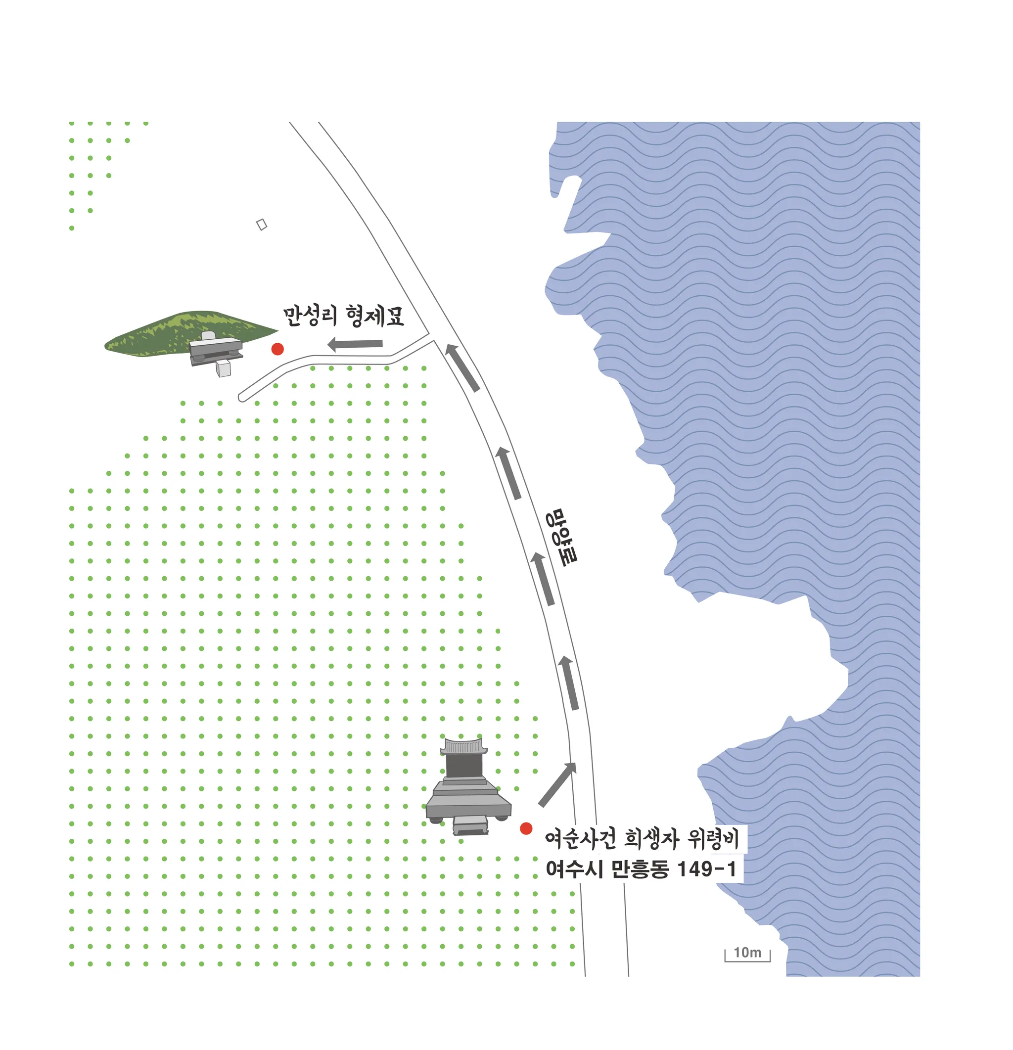 답사를 맡아준 주철희 박사는 여수 토박이다. 만성리 해수욕장은 검은 모래로 유명한 곳인데, 어릴 적 이곳으로 친구들과 놀러갈 때면 어른들이 이런 말을 건넸다고 한다. “굴(마래터널) 지나면 움푹 파인 구덩이 하나 있다. 지나다 돌이나 하나 던져줘라.” 대부분의 사람들이 만성리에서 많은 사람이 죽었음을 알고 있었을 것이다. 하지만 그 사실을 공공연하게 말하기는 어려웠다. 그것이 못내 미안했던 것일까. 그 마음들은 그렇게 돌탑이 되어 쌓여갔다.
